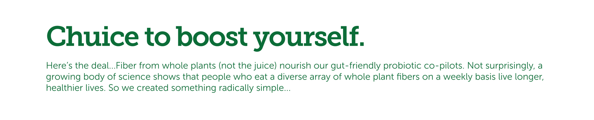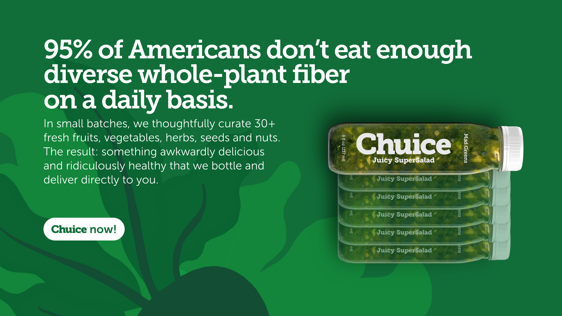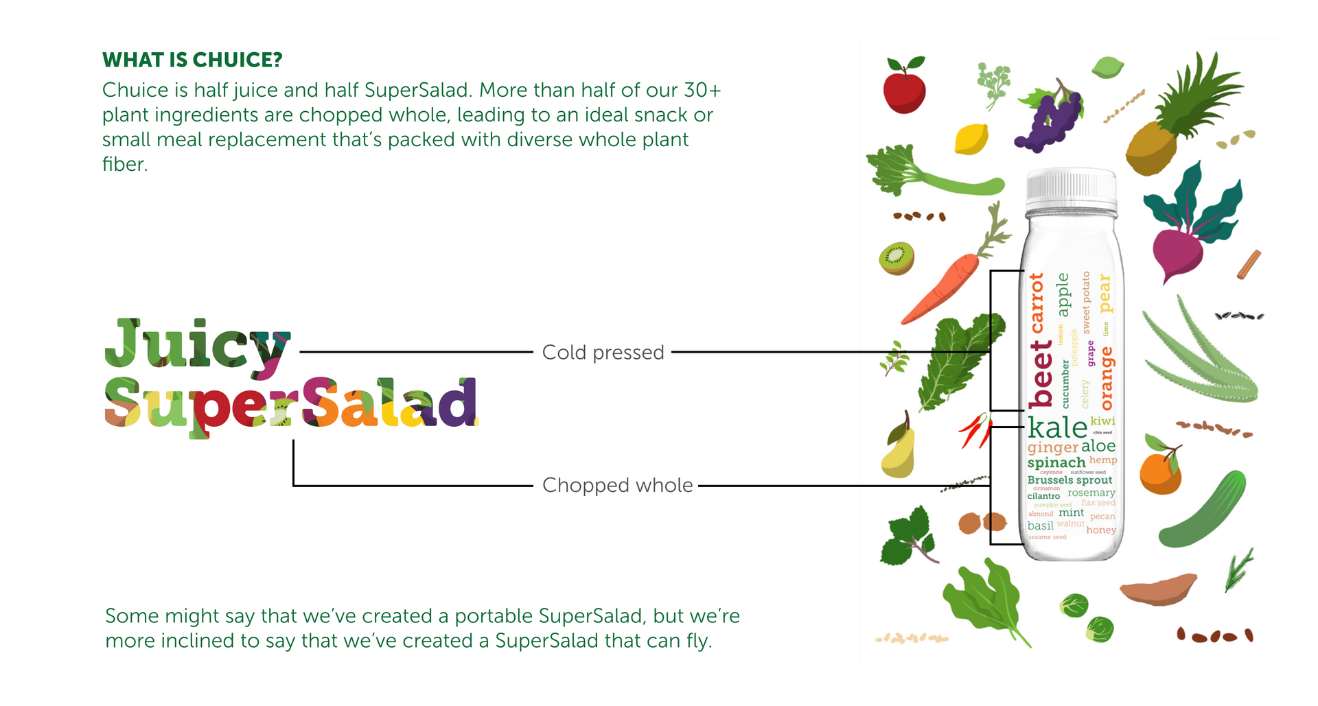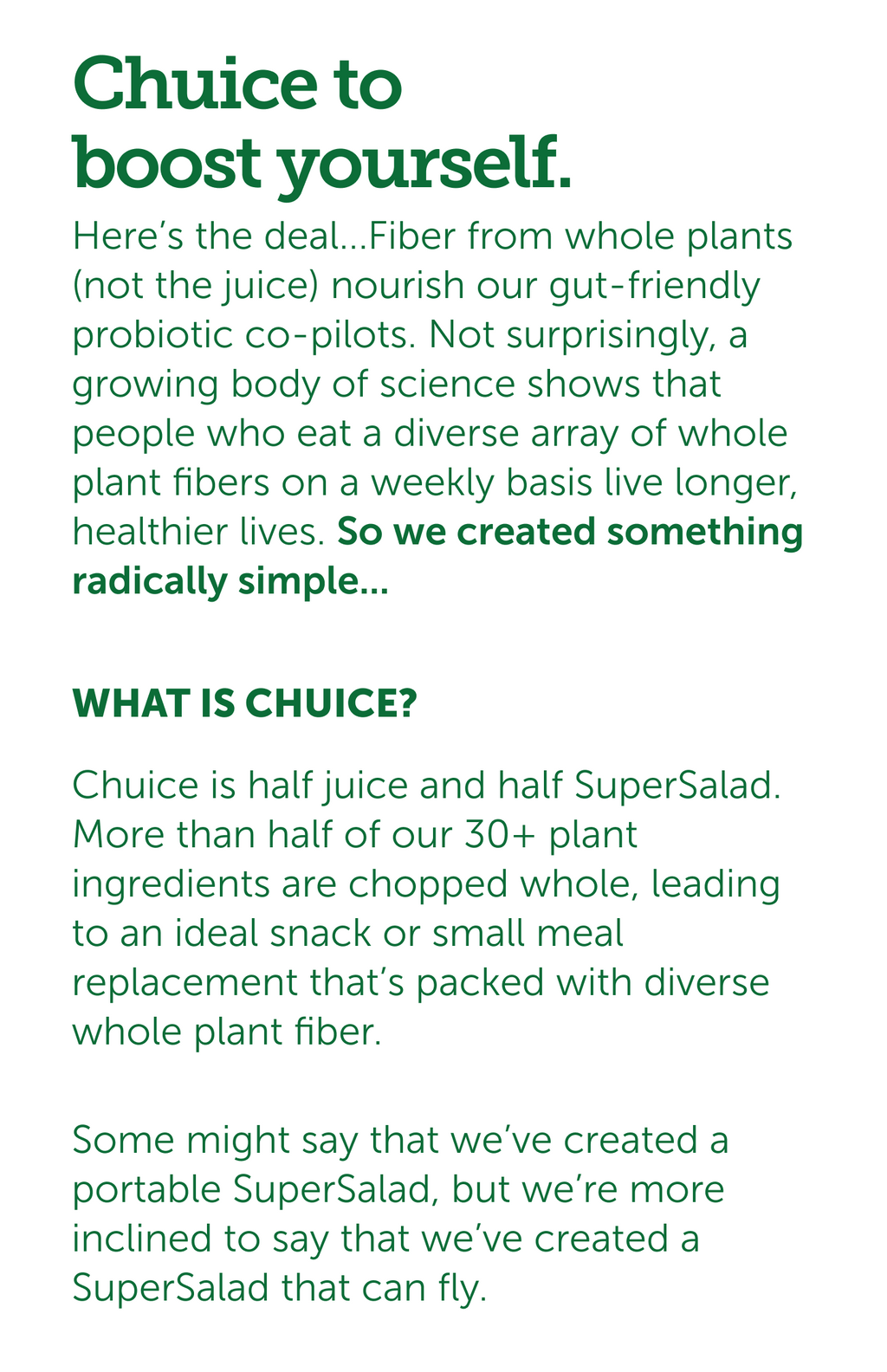 "I have been drinking Chuice since 2012 and it completely changed my health and body. Starting the morning with a fiber boost of fruits and vegetables is a complete game changer, especially if you’ve never done it before. I will forever be grateful for this magic in a bottle."